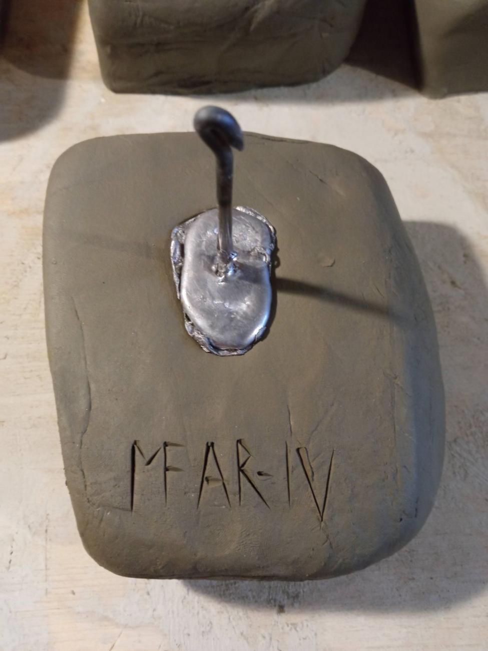 | MF MA-2 | Second attempt with Apiro marl. Precise hollow done with DAS. Cracked while drying, it was used to obtain the lead stamp of the hollow. The mould later split in two halves. |