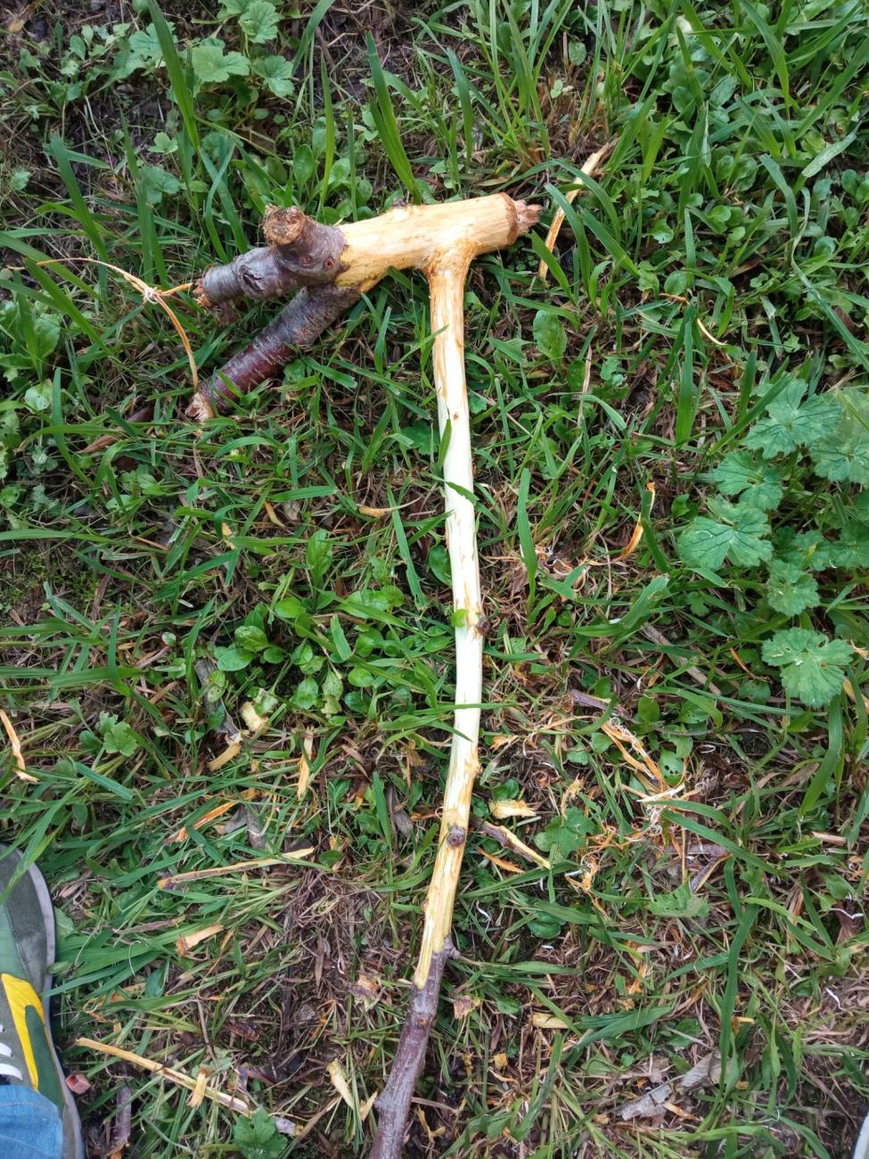 Meanwhile, during a moonless night in October, which traditionally is the best period for cutting wood6 , the branch of a cherry tree (Prunus avium) was cut using a flint biface. This is because its L-shape was deemed suitable to constitute the haft for the copper axe that was going to be produced with the marl moulds. The branch was debarked using an obsidian blade (See Figure 30) and then was stored for seasoning, hanged upside down in the same cellar where the moulds were drying. It should be noted, however, that the author is unaware of any evidence of P. Avium being used as a tool in European archaeological contexts earlier than the Bronze Age (Vv. Aa. 2015). This wood was chosen because it was readily available and quite strong, which made it suitable to be used as the haft of a tool.