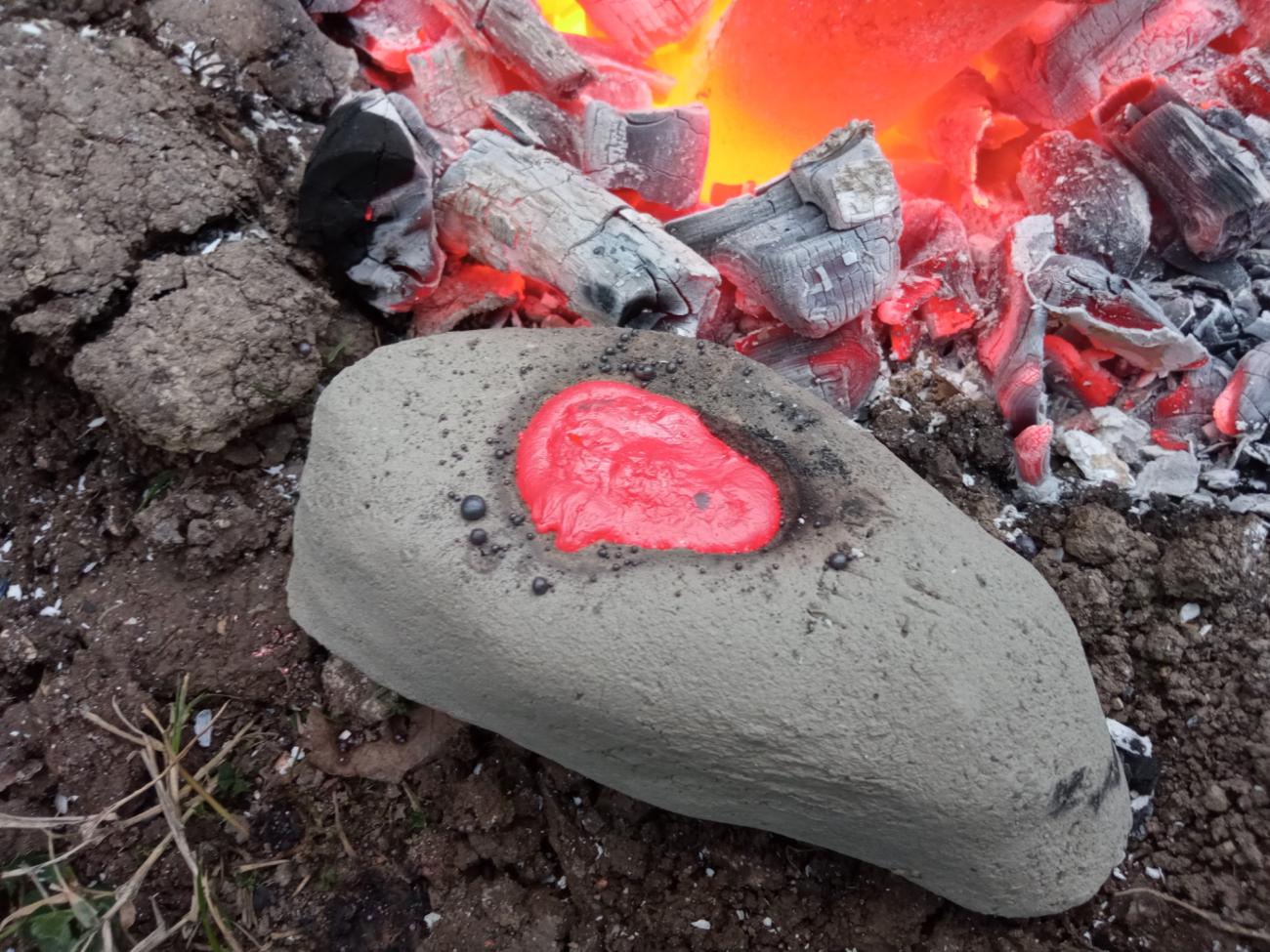 Melting copper in the marl mould using a historically accurate fire pit