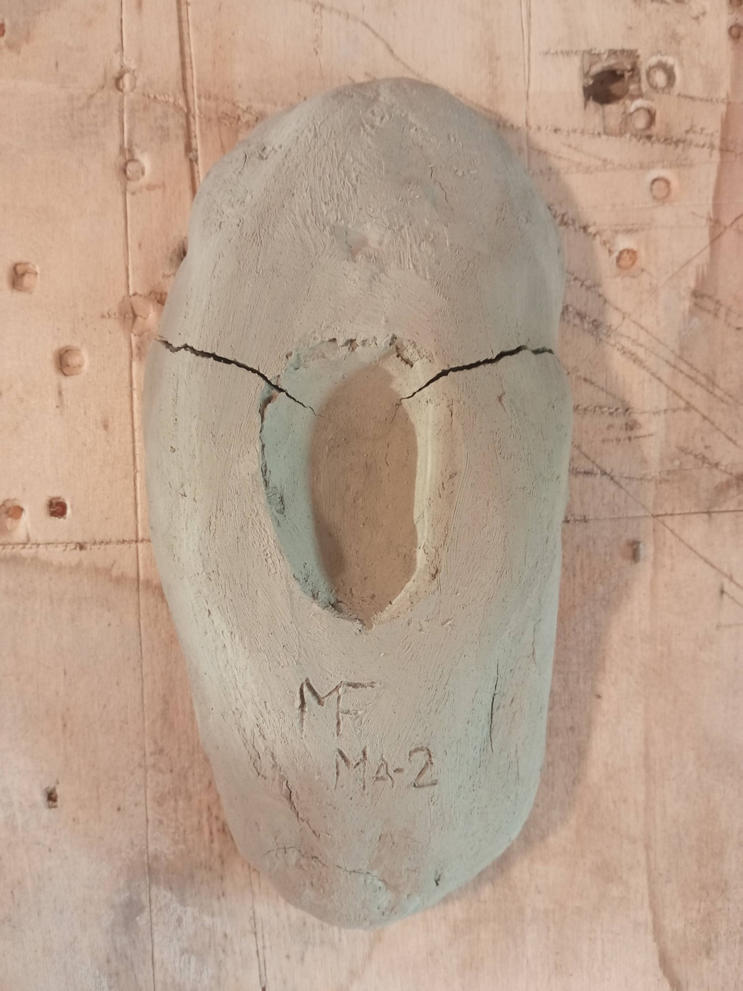 | MF MA-1 | First attempt with Apiro marl. Done to become acquainted with the material. Hollow done by hand. Uncooked. Unused. |