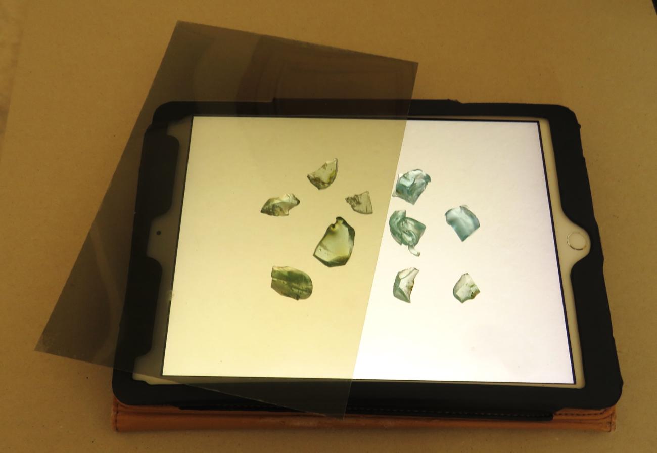 - Polarising film was used to show stresses in the glass to identify different COE ratings between the Roman glass and modern glasses.