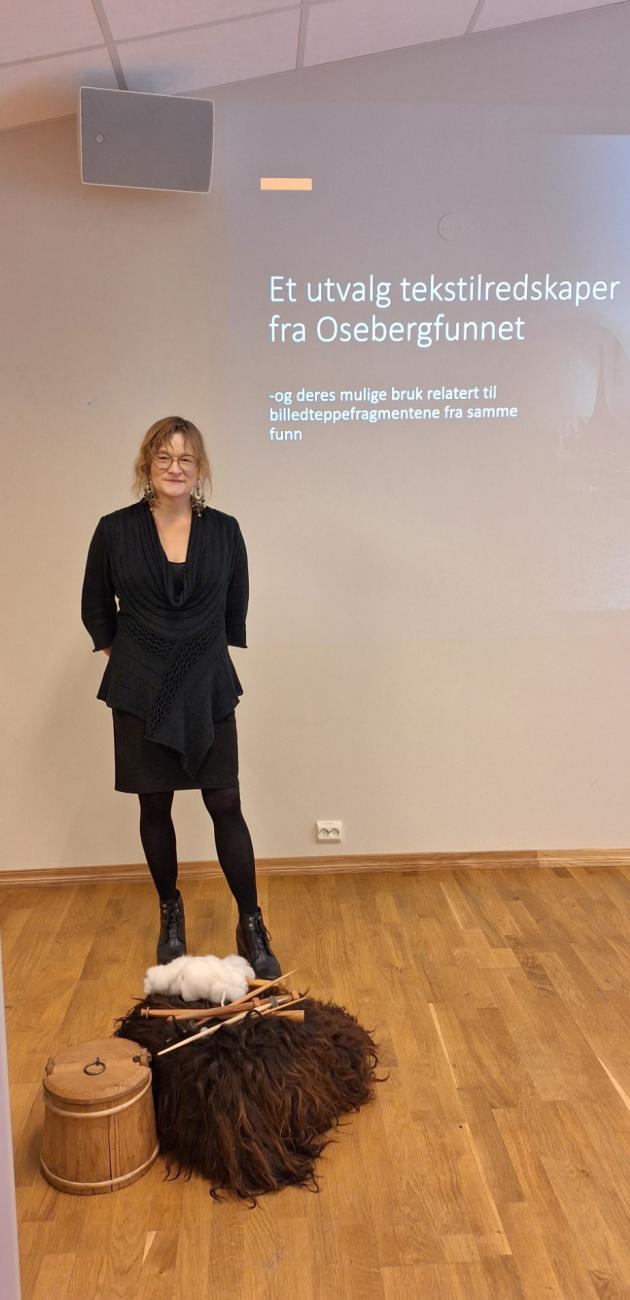 After a short break it was time for another presentation with a focus on textiles. Astri Bryde, currently taking a master’s degree at the University of South Eastern Norway, is researching some of the textile tools from Oseberg. By testing different reproductions of the tools, she is trying to determine how they were used and if they could be connected to the production of the tapestry found in the ship.