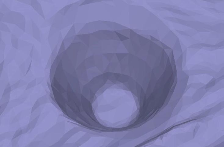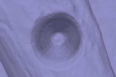 The models were more useful for examining perforation morphology. Constraints on processing power and available hardware (images were shot freehand rather than using a tripod and turntable) meant that the models were rather low-resolution in terms of their numbers of points, faces, and vertices, and therefore representation of surface shape was relatively coarse. Nevertheless, each of the models is adequate to facilitate recognition of either the circular or rounded polygon shape distinctive of thick- and thin-flake perforation respectively (Figures 16a and b). For this purpose, the 3D models are at least as effective as traditional photography. Indeed, in cases where the characteristic corners produced by thin flakes are more subtle, the dynamic nature of the models gives them an edge over static images, since often the best single viewpoint from which to see a certain corner renders the remaining corners invisible, and so in order to get a sense for the whole shape it is preferable to have freedom of movement between viewpoints.