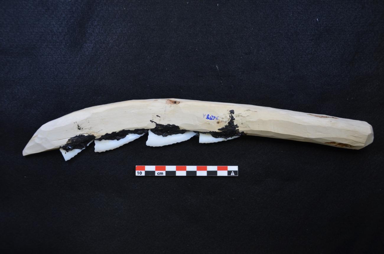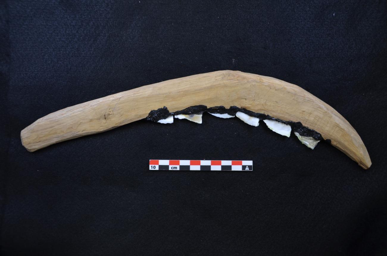 These follow the design of entire hafted sickles with flint inserts discovered at the early Neolithic site in Karanovo, Bulgaria (Gurova, 2016) and at the underwater site of La Marmotta in Italy (Mazzucco, et al., 2022). They consist of a curved, wooden frame with four to seven flint inserts placed at a 45°angle into a grove. Also, sickle inserts with a similar angular gloss made from flint have been identified in LBK and Rössen sites in North-Western Europe (Bakels, 2009; Bakels and van Gijn, 2015). These composite tools with a denticulated edge appeared to be widespread in the Early and Middle Neolithic in North-Western Europe.
