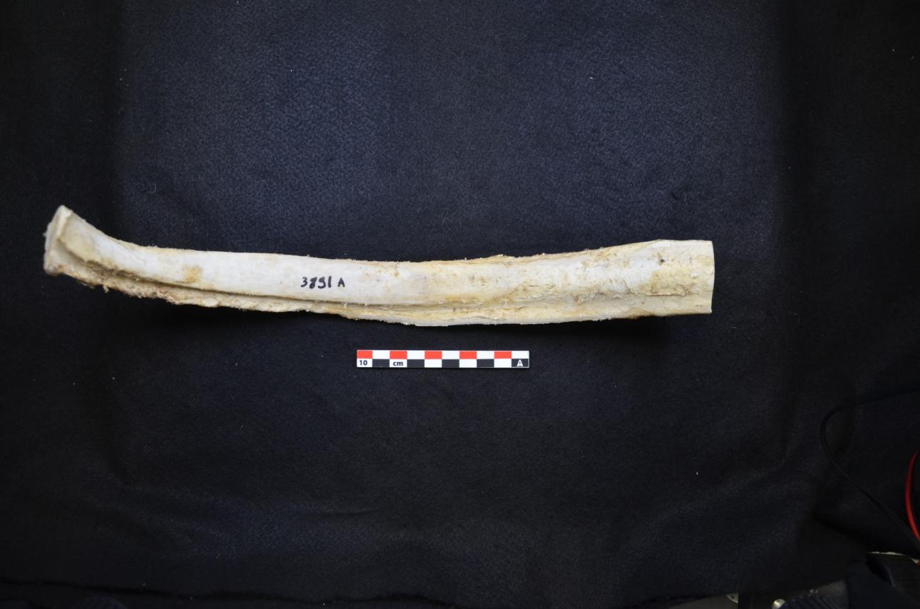 Archaeological traces of a bone implement such as cattle ribs used for cereal harvesting have not been encountered in the literature. Still, as this thesis focuses on potential organic materials used for reaping, it was judged interesting to find out if a tool made from bone could be effective. Bone tools are known to have been widely used in the Neolithic such as needles, awls, or points (Lüning,1968; Vermeersch and Burnez-Lanotte, 1998). Could a bone tool with a flat shape such as a rib therefore have been used for reaping? For that hypothesis, long cattle ribs were collected, and their edges sharpened to increase their effectiveness. These ribs were between 34 cm and 38 cm long, 6 cm to 3 cm wide and 1.5 cm to 2 cm thick (See Figure 5).