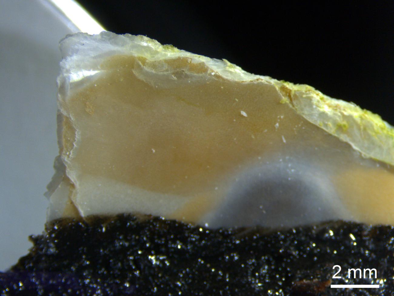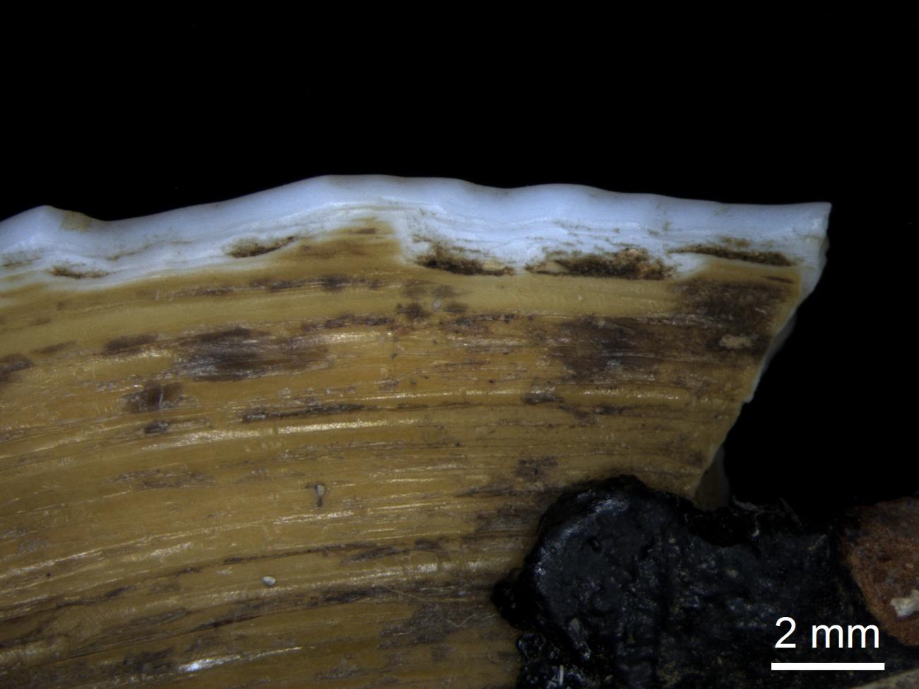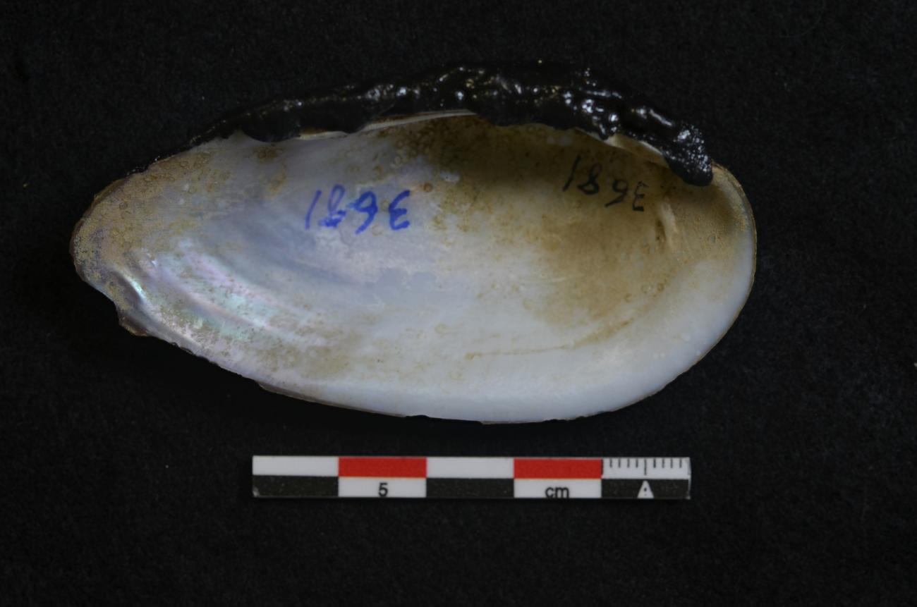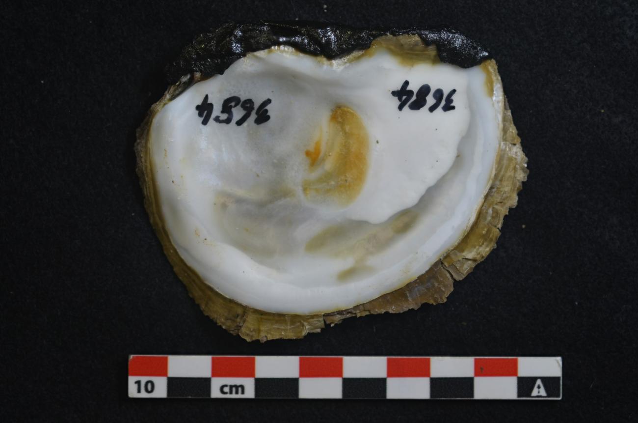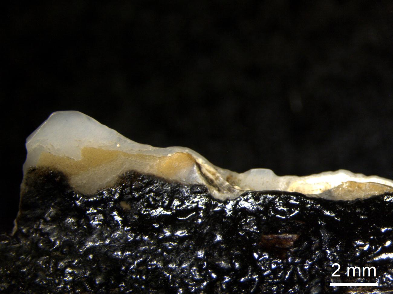 The dorsal sides of all oyster and mussel shells were covered with pitch to avoid hurting the harvester's hand while reaping. The sharp, ventral part was left as originally found.