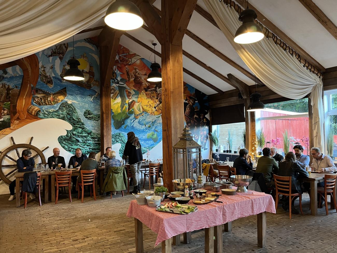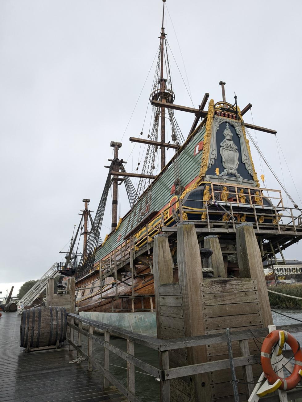 Guided Tour Day 1 - Following the workshop, the conference participants were divided into two groups. One visited the Batavia, the reconstruction of a 17th-century ship moored in the outdoor area. The second group took a guided tour of the Batavialand Museum, an exhibition space dedicated to Dutch maritime archaeology and the history of the Zuiderzee. The guided tour of the Batavia was livestreamed on Discord, allowing online participants to join in on the experience.