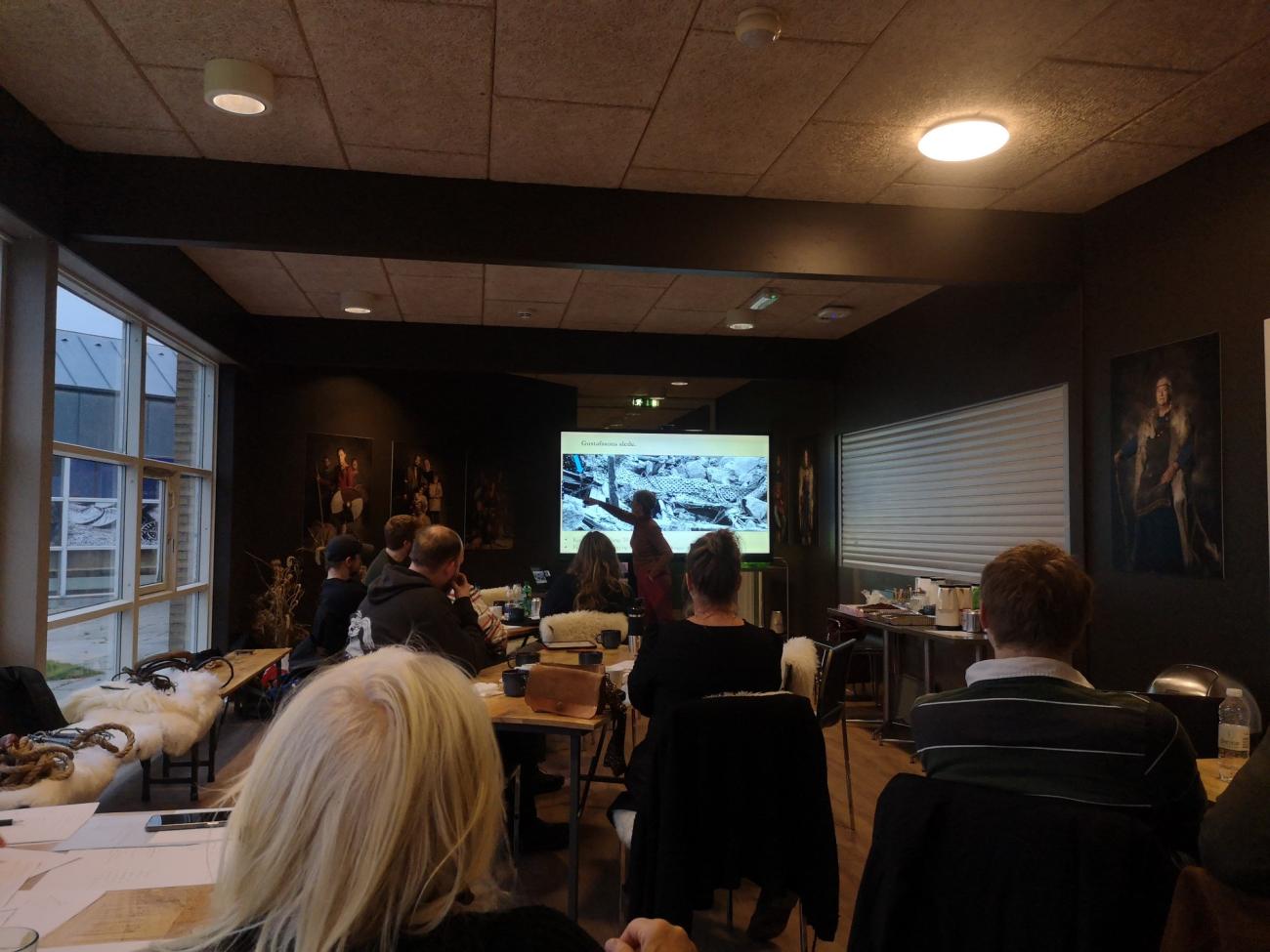 The talks at this year's meeting covered a remarkably broad range of topics. The day opened with a presentation by Adam Cordes of the National Museum of Denmark on experiments conducted at Lejre: Land of Legends for his Ph.D. project, focusing on beer brewing in prehistoric Denmark. This was followed by Karl Jakob Laberth of Vikingelandsbyen Albertslund, who argued that archaeologists have misinterpreted funnel-shaped glasses as drinking vessels, suggesting instead that they should be understood as glass lamps. His argument was supported by experimental trials, which have also been published in EXARC. Beate Krydsby Kåresen similarly challenged prior archaeological interpretations, this time regarding Norwegian rattles from the Viking Age. She presented compelling arguments that these objects were used to secure loads to sleds, supported by experimental trials.