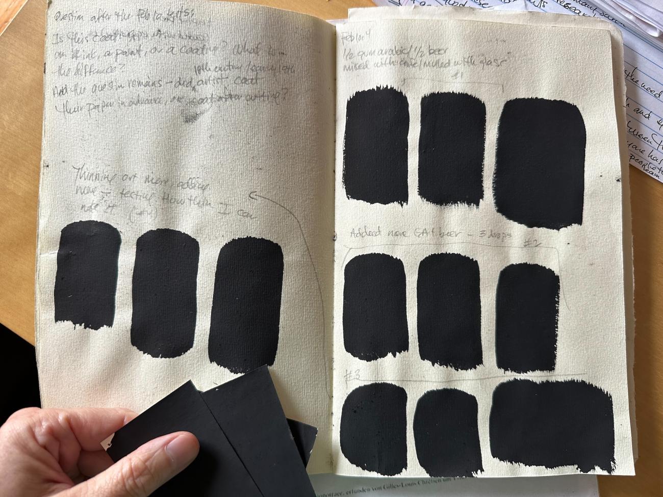 The Mid-Atlantic seaboard of the United States can vary between dry and humid, cold or warm, sometimes daily, hourly, or a fraction of an hour. In addition, buildings vary in relative humidity depending on their construction. I realised that varied environmental conditions, even indoors, variations in beer, differences in the age of beer, and lampblack made from different manufacturers would have affected travelling artists, as well as regions whose humidity and temperatures varied widely throughout the year.