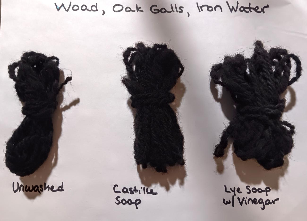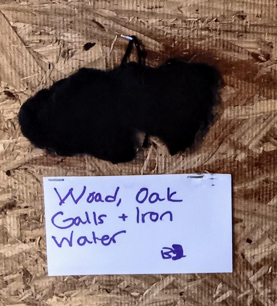 - Alum Mordant with Woad Dye, Post Mordanted with Oak Galls and Iron Water