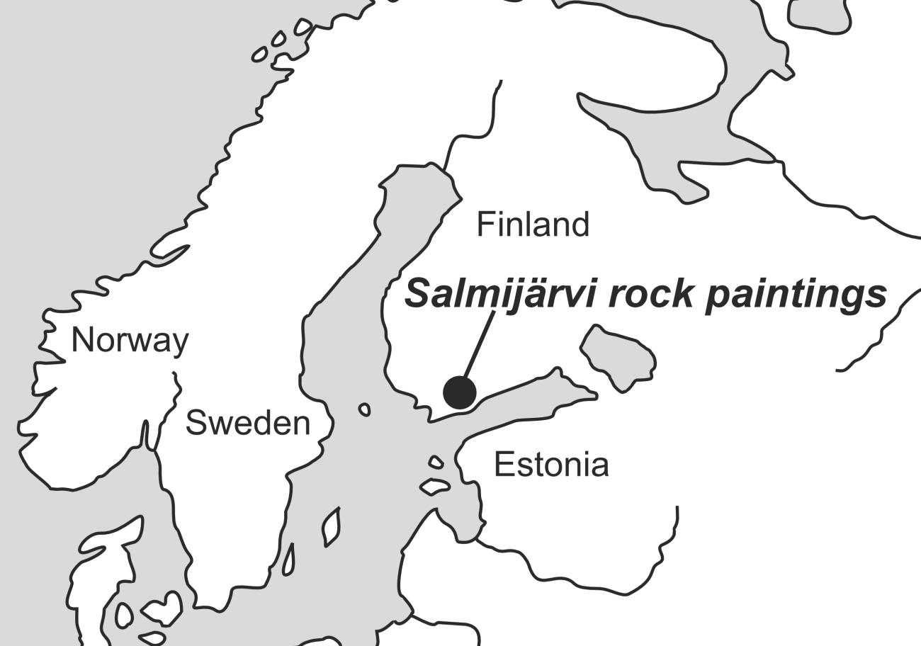 The rock painting that Peltoniemi is talking about is panel B of the Astuvansalmi rock art site in eastern Finland.
