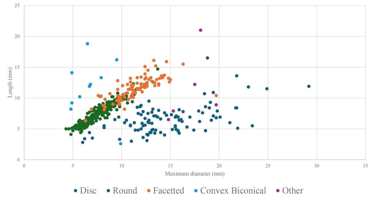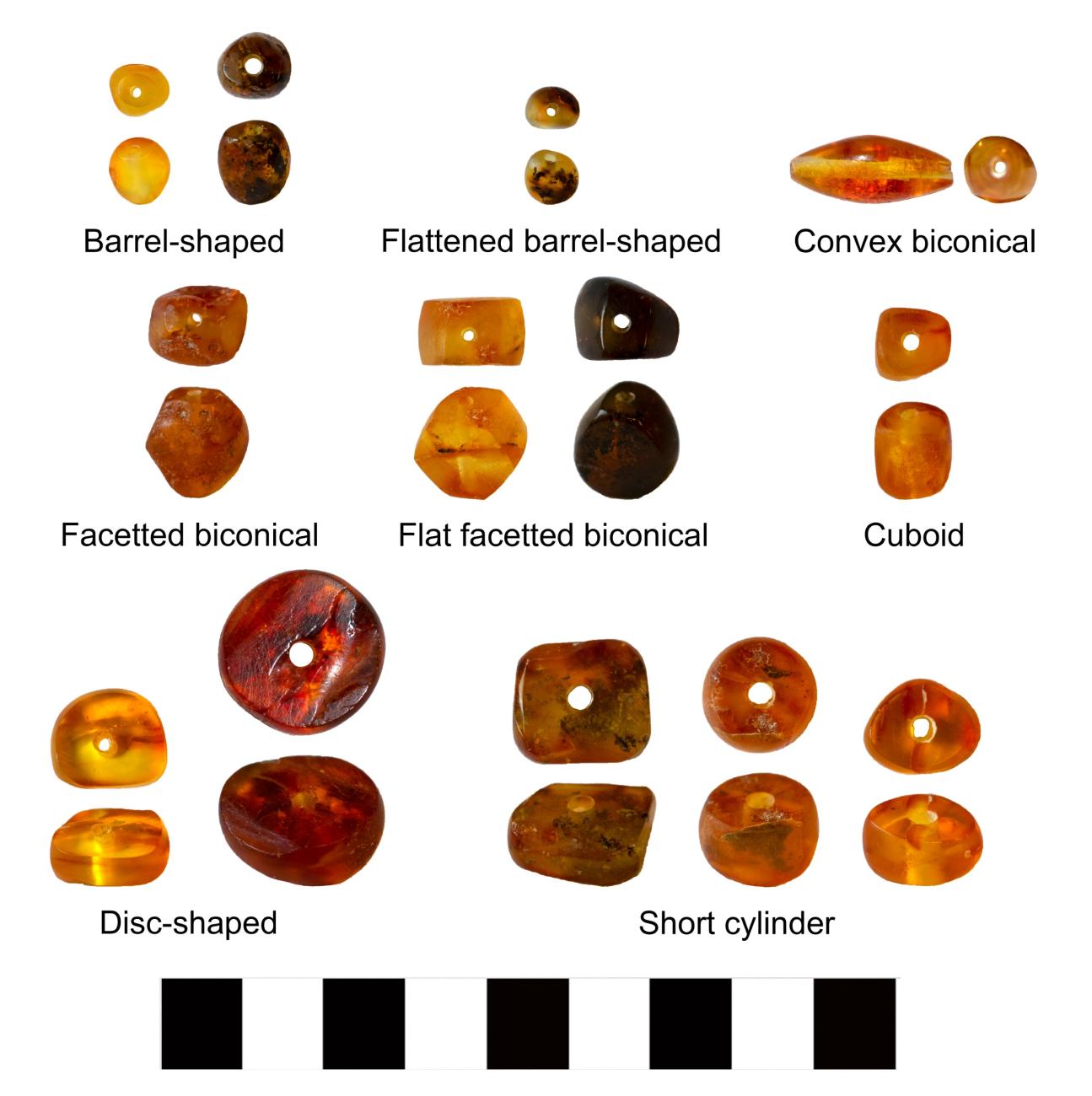 Table 1. The main amber bead types as defined by their shape and the relationship between their measured length and maximum diameter.