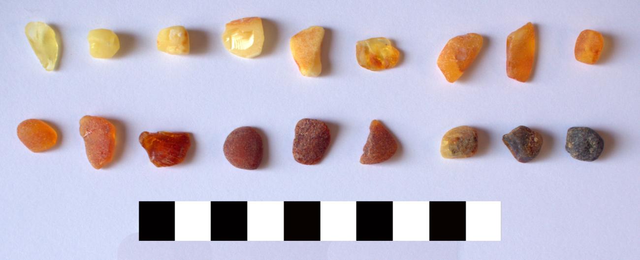 Much of the working waste produced during amber bead manufacture is extremely small, often only a few millimetres in diameter. Unless sieved using a very fine mesh, much of the evidence for amber-working would not be recovered during excavations (Langbroek, 2021, p.287). Some by-products of production, notably the amber dust and the very smallest filings and chips, would be archaeologically invisible. As noted, these 'waste' materials can be reused as a polishing medium by mixing with a suitable lubricant. It would also be possible to pulverise any small pieces of waste amber for the same purpose, but whether this was ever done is unclear.