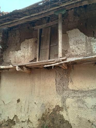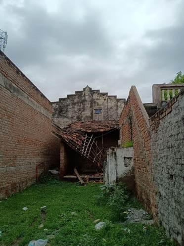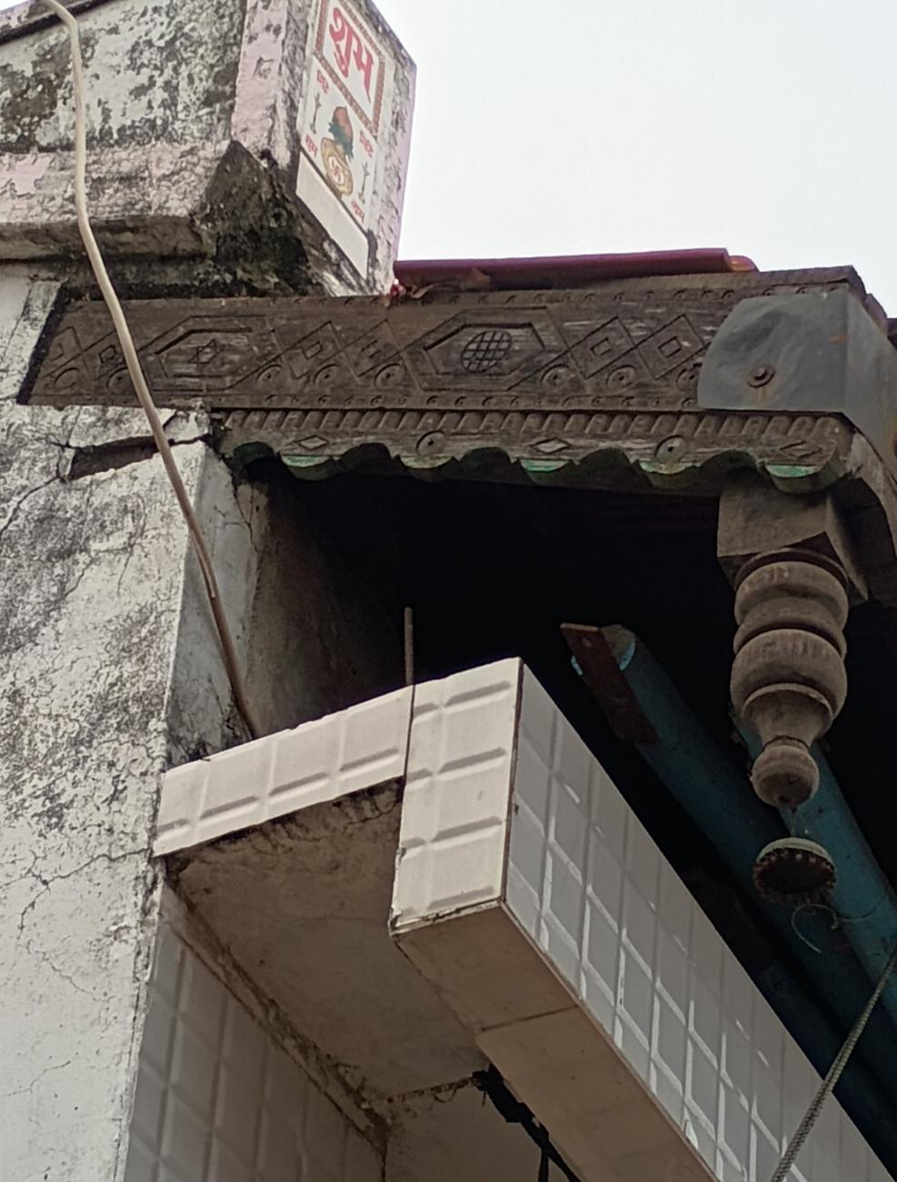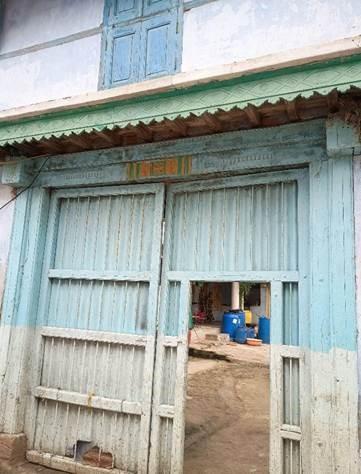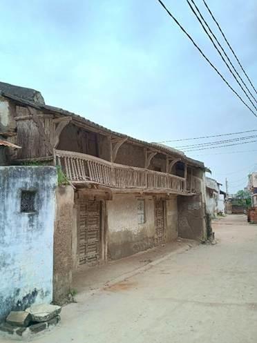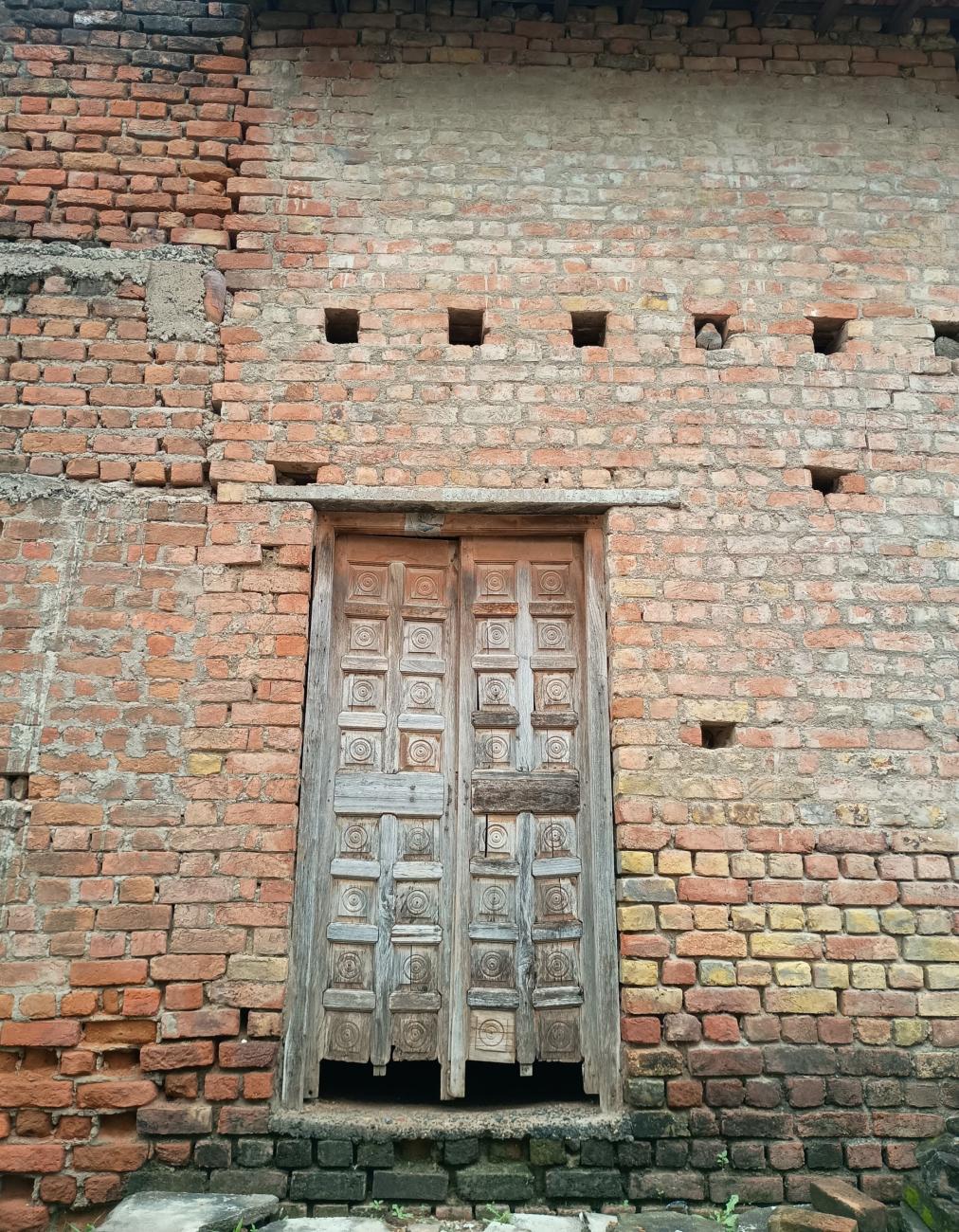 Uteliya is a small, quiet village. When we arrived in the late afternoon, most villagers were indoors, escaping the heat. A few elders sat outside, their curious gazes following us as we made our way toward the palace. The lanes were muddy, and we navigated them carefully. The village presented a blend of old and new. Ancient houses, made of burnt bricks and covered with mud, stood alongside modern constructions. Their doors were heavy wooden planks, studded with large nails. One of the most striking features was the sloping roofs with projecting wooden balconies, showcasing intricate railings, an example of local creativity.