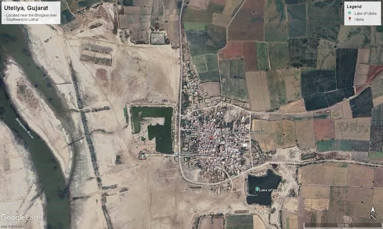 Archaeological sites are often discovered on mounds formed by successive layers of settlement, usually near a water source. Intrigued by this, I used geospatial mapping and Google Earth to scan the villages around Lothal. A place named Uteliya, not more than 11 kilometers southwest of Lothal, caught my eye. It is situated near the Bhogavo river, has two lakes, and features a centuries-old heritage palace located at the highest point of the village mound. This combination of features; a mound, proximity to water, and closeness to a major Harappan site, this, a mound, proximity to water, and closeness to a major Harappan site, sparked my curiosity.