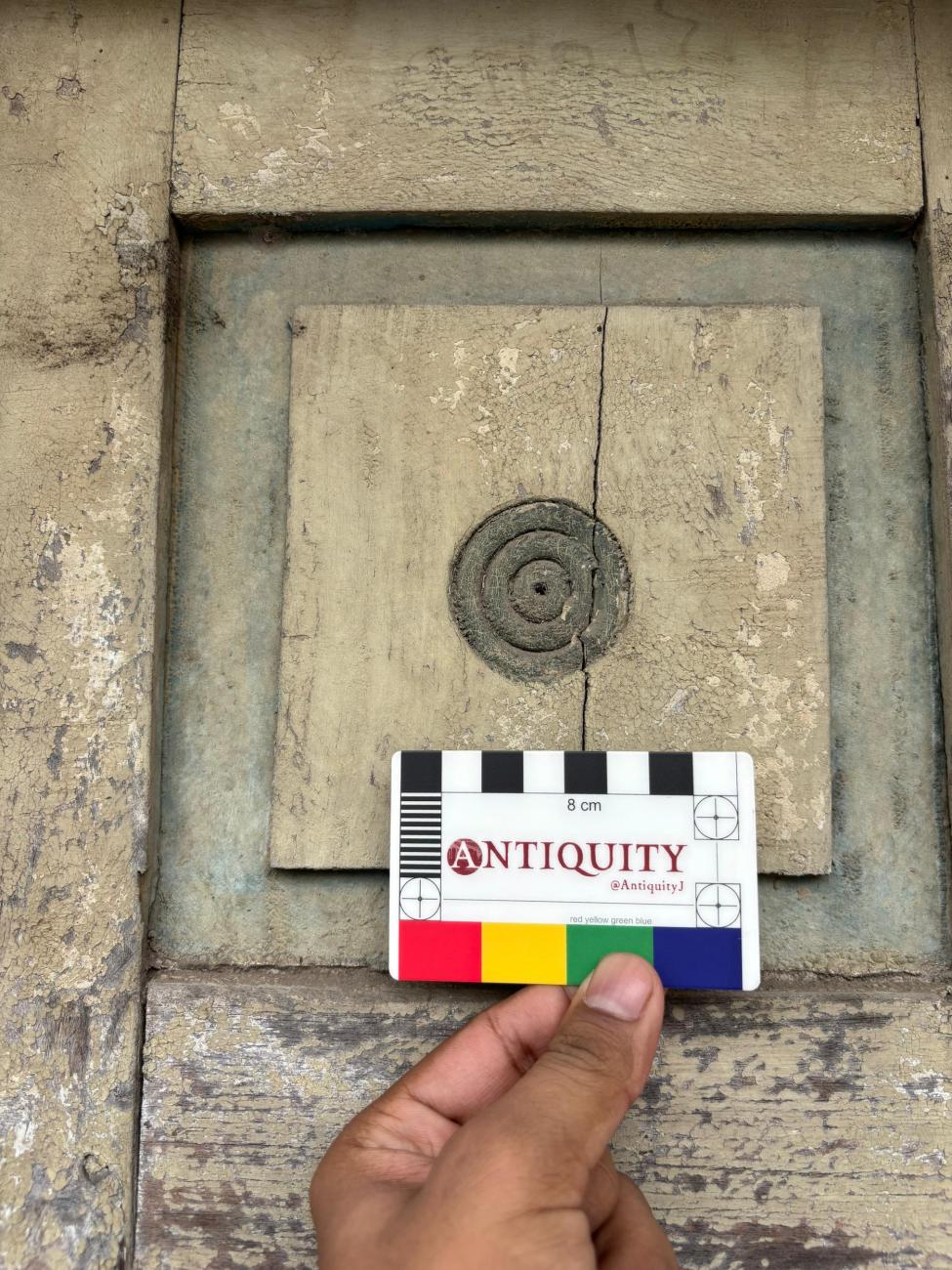 Behind the main Uteliya Palace, we found a crumbling mud house said to be over a century old. Focussing on the palace structure itself, we spotted a symbol closely resembling the 'Swastika,' a motif found on seals from Harappan sites like Lothal, where it held ritualistic and religious significance.