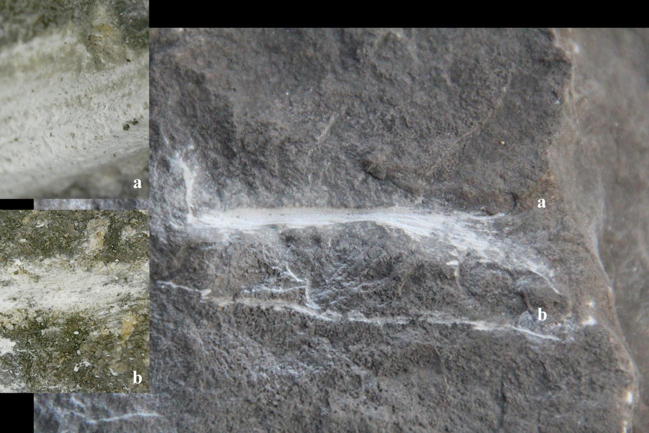 Cutting soft materials on the unworked rock surface resulted in non-systematic, fine, and thin striations. The orientation of the striations was triggered by the manner in which the meat was sliced. Most of the striations exhibit a V-shaped profile, with the presence of inner micro- striations present along the edges and at the valley (i.e., the bottom of the groove). In some cases, the striations bear more U-shaped sections, with several micro-striations on the valley, likely caused by multiple strokes during the cutting process (See Figure 12).