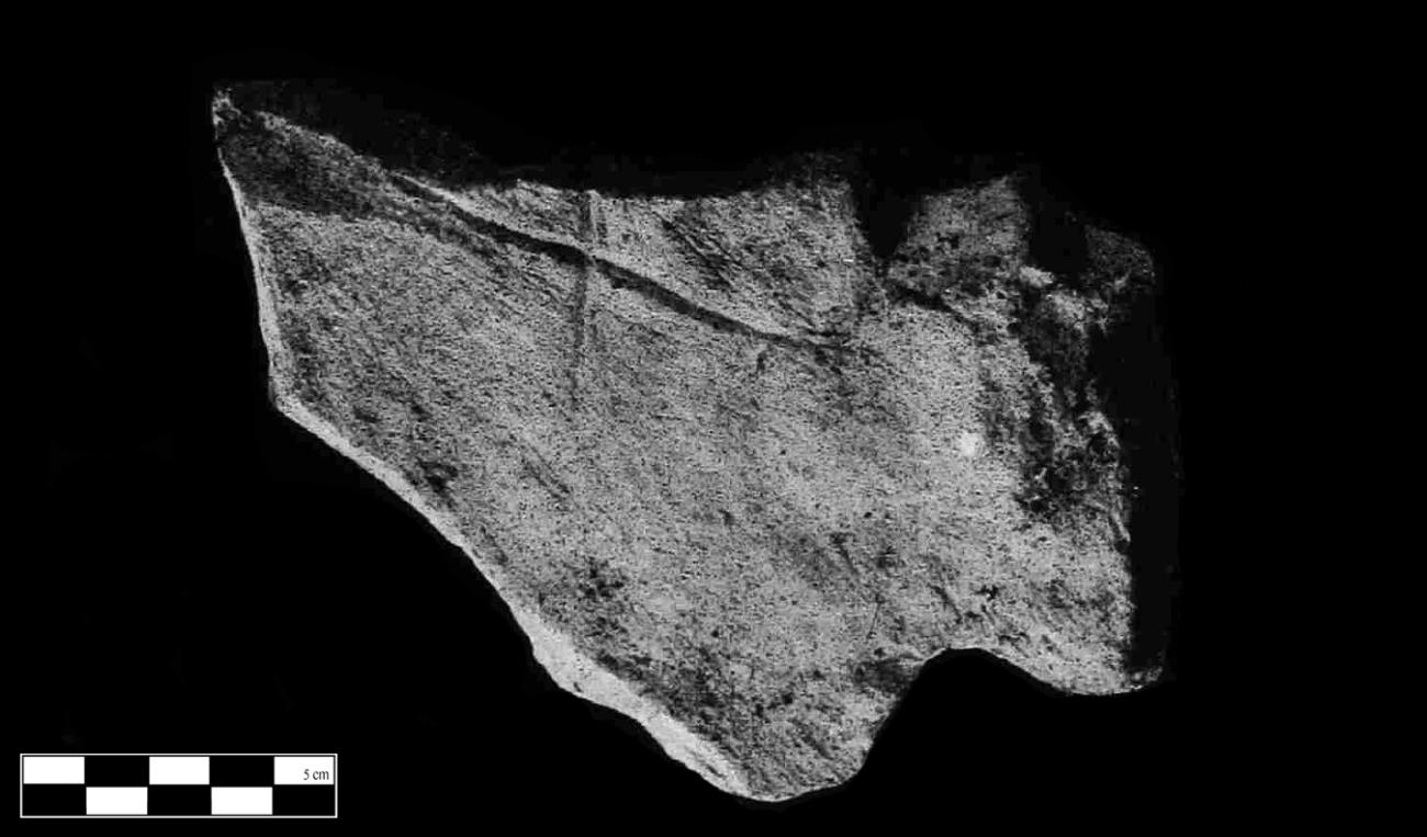 A particularly significant find was a separate rock fragment bearing linear marks, which was discovered within the Upper Palaeolithic cultural deposit (See Figure 2). According to Zamyatnin, the fragment features two intersecting lines and an extensively scraped surface, as does part of the shelter floor (Zamyatnin, 1937).