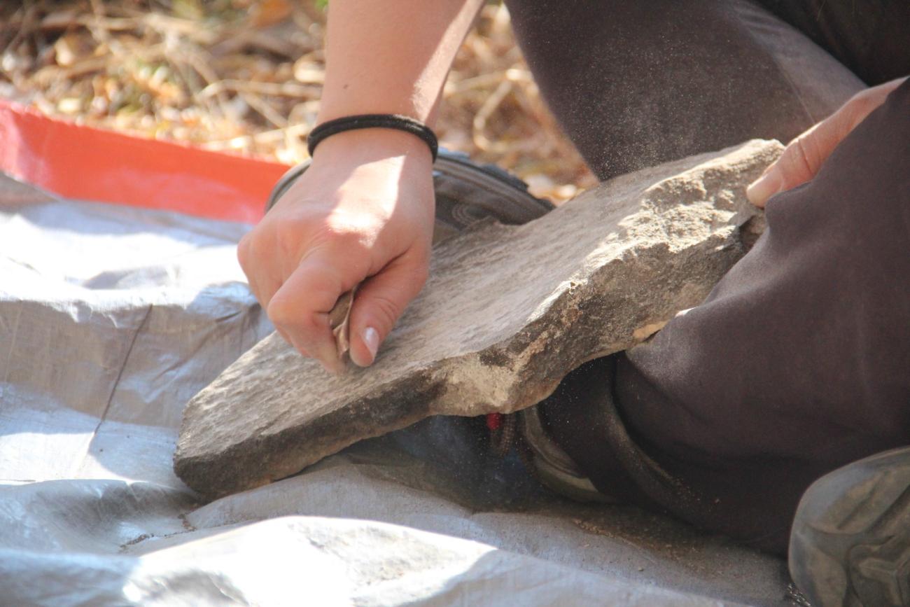 | 3 | scraping | rock | 29x13 cm | flint flake | unretouched edge | Unidirectional | 6x4 | 4 | ||