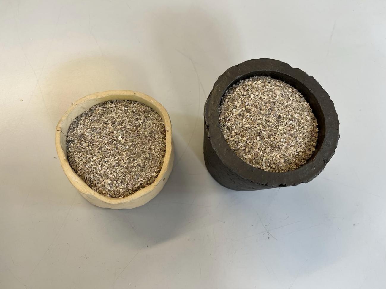 | 6W | Chunks (1-5 mm) | Handmade clay | Crushed oyster shell (1 mm thick) | N |