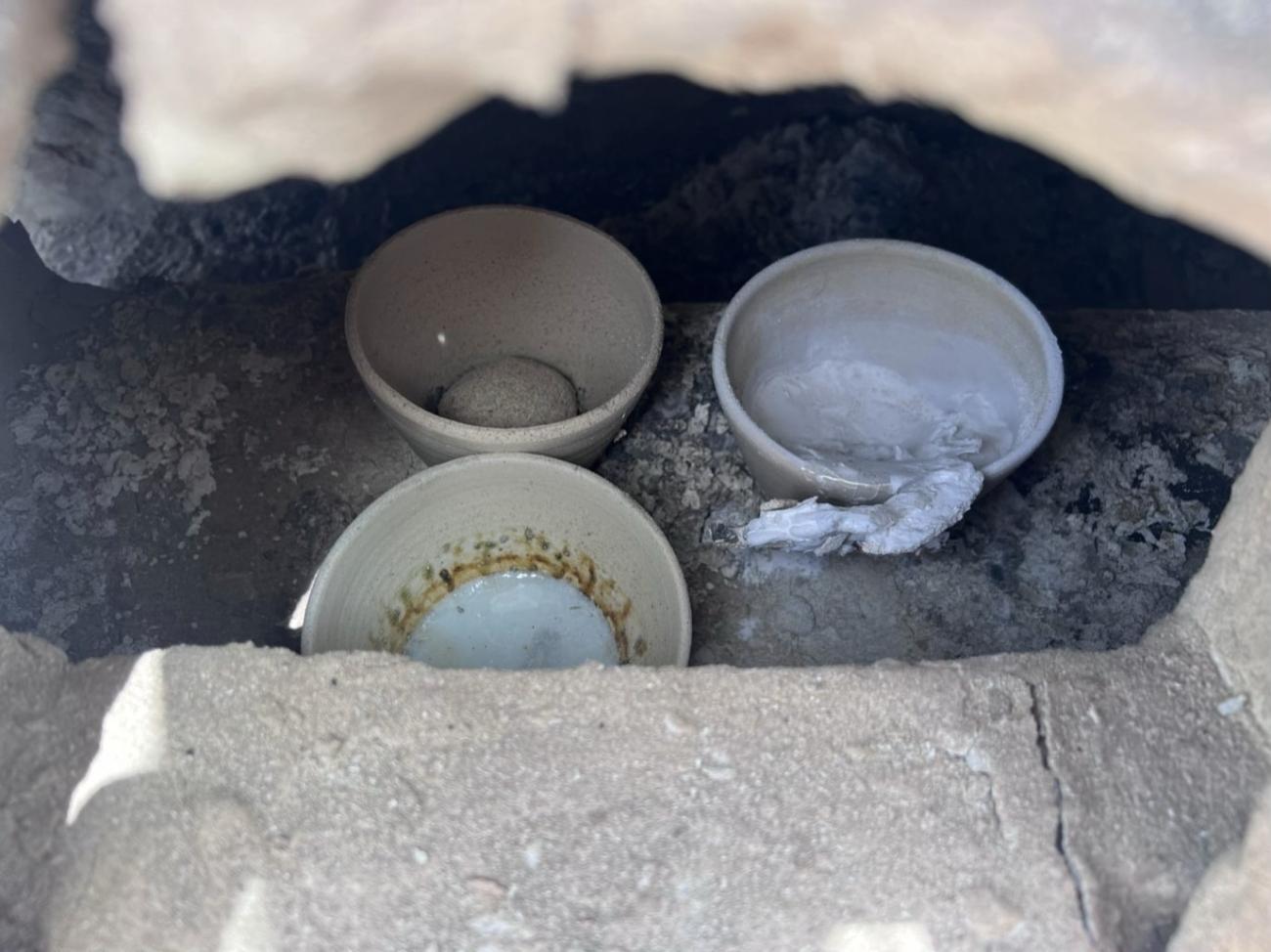 In order to test the feasibility of separator use in a traditional wood-fired furnace with larger crucibles, tests were also undertaken at the Torreparedones Furnace Project, July 2023. The project aimed to reconstruct and operate a large 12th-century glassworking furnace excavated in Murcia, Spain (John Pearson, pers. comm.) (See Figure 5).