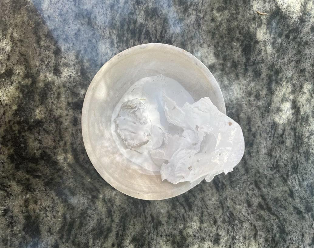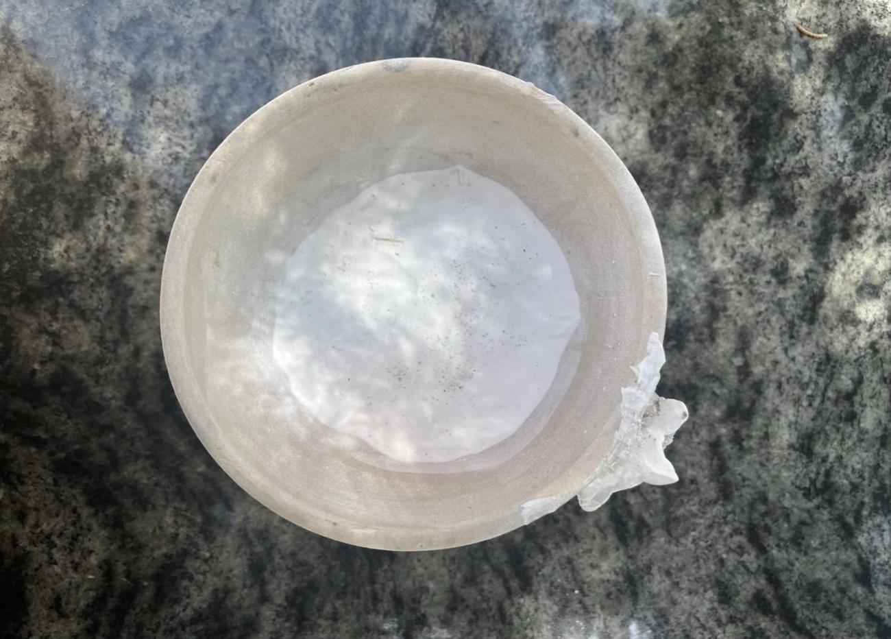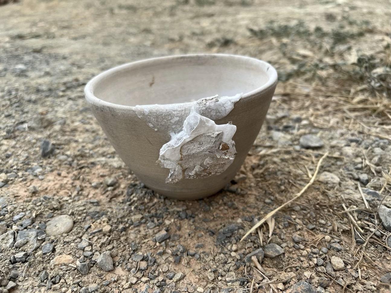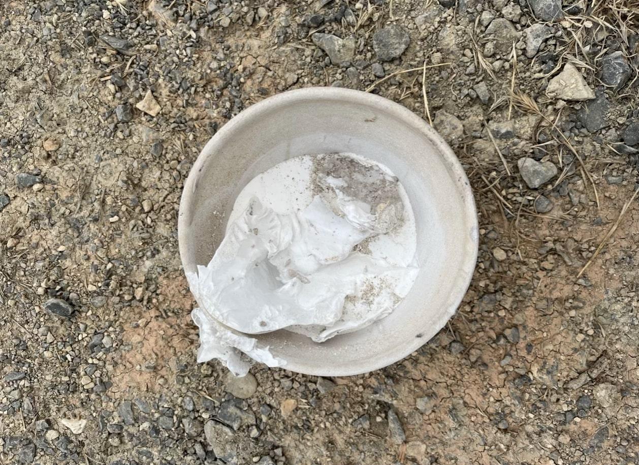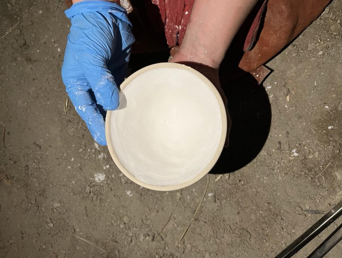 Prior to experimenting with the use of different separators, it was hoped to test the feasibility that a parting layer would allow the resultant ingot to be easily removed from and retain the form of the crucible. For this reason, the initial separator used was a modern 'kiln batt wash', used to prevent pottery glazes from adhering to the kiln furniture. Kiln batt generally consists of alumina, sourced from kaolin clay, as well as silica and zirconium. Silica and alumina-based kiln batts are typically used for lower firing temperatures (950°C - 1305°C), whereas zirconium-based kiln batts are reserved for higher firing temperatures due to their higher melting point (1855°C) (Grenson, 2022). The kiln batt was mixed with water to create a paste separator, which was applied throughout the interior of the crucible to approximately 4 mm in