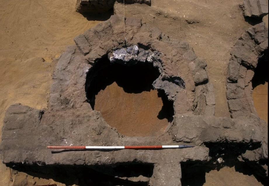 Petrie's initial excavations of Amarna were continued by Nicholson (2007) and revealed two kilns thought to have been used in glass manufacturing (See Figures 1 and 2). Nicholson's findings also include multiple cylindrical vessels, which are assumed to be the crucibles used for manufacturing glass ingots. The cylindrical vessels found at the site are very similar in measurements to the ingots retrieved from the Uluburun shipwreck and many of the artefacts appear to have a calcareous slip or lining on the interior of the vessels, suggesting that some sort of lining was used in the firing process to separate the glass from the crucibles (Nicholson and Jackson, 2007: 90).