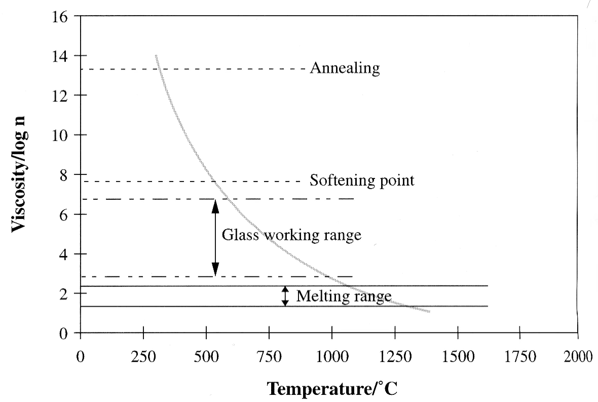 | Reference Point | Definition | Viscosity | 96% SiO2 (°C) | soda - lime - silica (°C) |