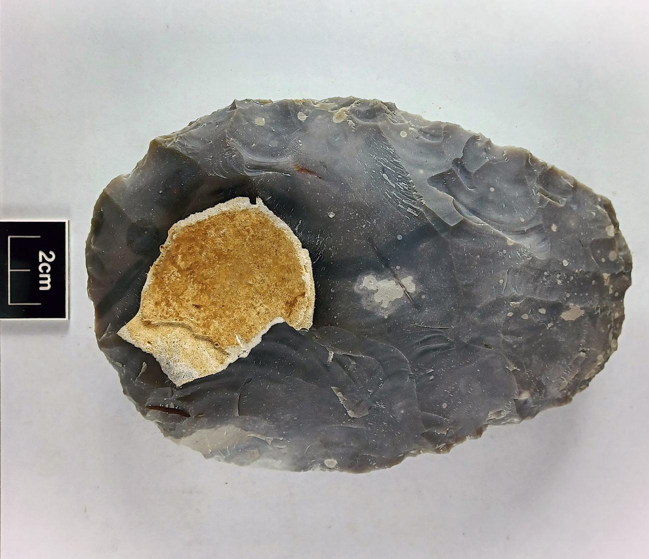 The key findings are that even though the replica Acheulean hand-axes had been thinned, in some cases aggressively, they were able to withstand high-energy percussive work without failing. In some cases, the working edge was damaged during use, which was easily repaired by retouch while still hafted.