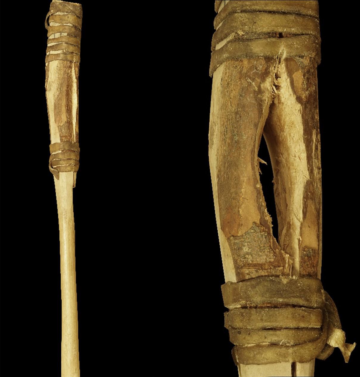 - AXE1.3 with a purposely split and opened haft for better lithic embedding.