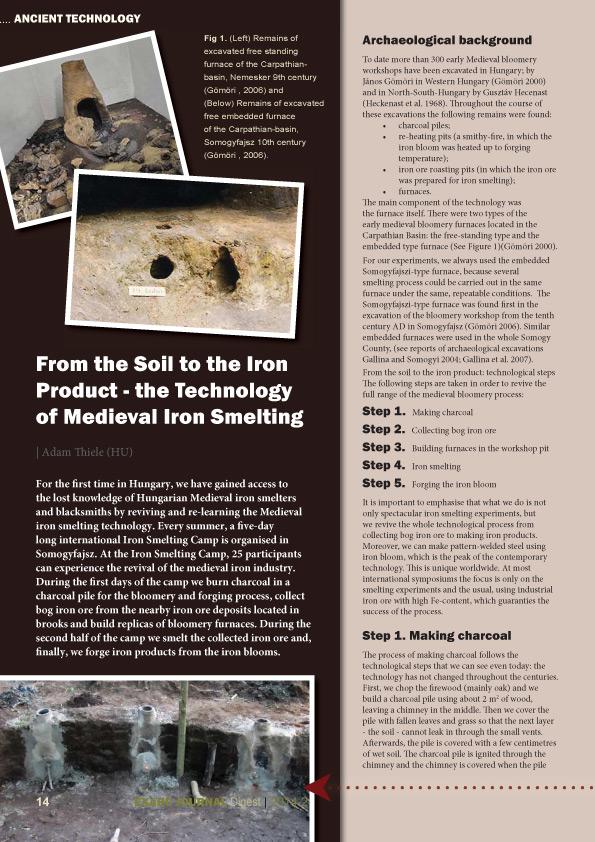 Every summer in Hungary a five-day international Iron Smelting Camp takes place. Participants burn charcoal, collect bog iron, smelt it and forge iron products. You can read about the camp in From the Soil to the Iron Product - the Technology of Medieval Iron Smelting, by Adam Thiele